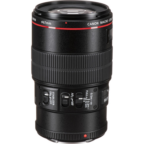 A Lente USM Macro IS EF 100mm f/2.8L da Canon é uma versão notavelmente atualizada da popular Lente Macro 100mm da Canon. Na sua encarnação mais recente, a 100mm f/2.8L Macro se junta à respeitada série L da Canon; Sendo assim, ela é vista como uma Lente de alto nível de potência de resolução, de construção geral, e de resistência à água. Outros aprimoramentos encontrados na EF 100mm f/2.8L incluem Estabilização de Imagem Ótica com até 4 pontos de controle de tremido e um USM (Motor Ultra-sônico) para focagem automática mais rápida e silenciosa com acionamento manual constante.